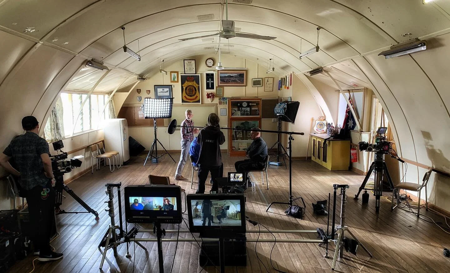 View fullsize 3 camera set up, utilizing the windows and doors to light the interview.